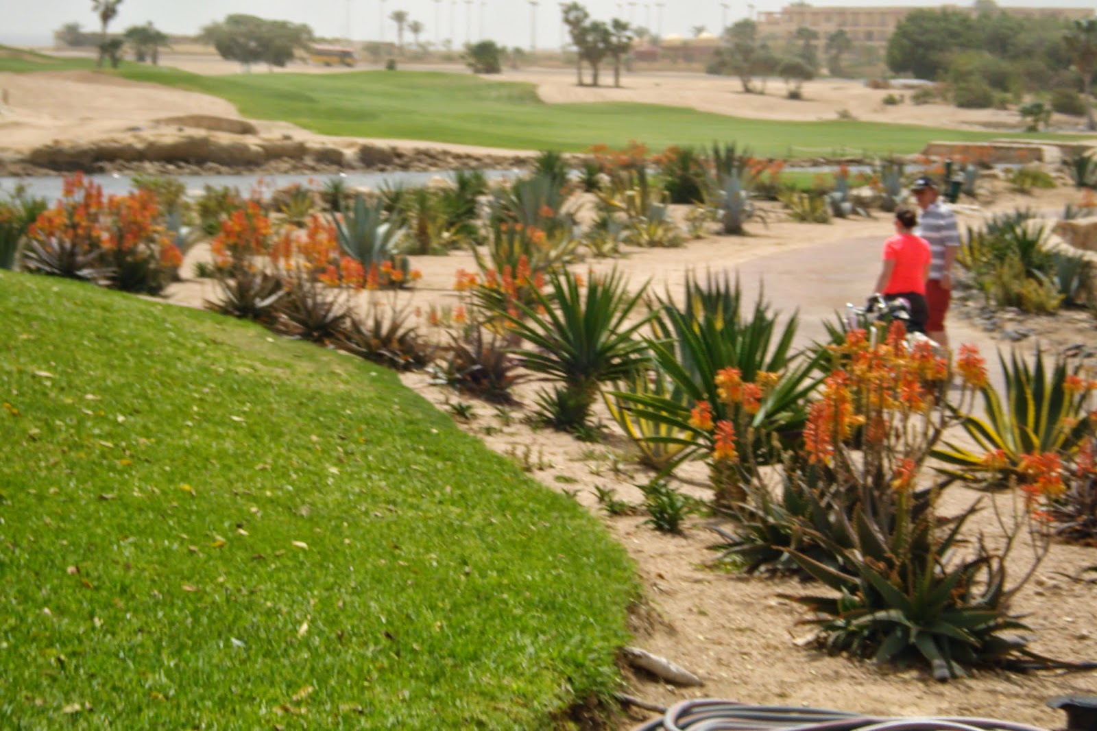 We were taken around the 18 hole championship golf-course on a golf cart. This would appeal to most golfers, a par 72 course right by the sea the lush green fairways a contrast to the distant desert landscape.